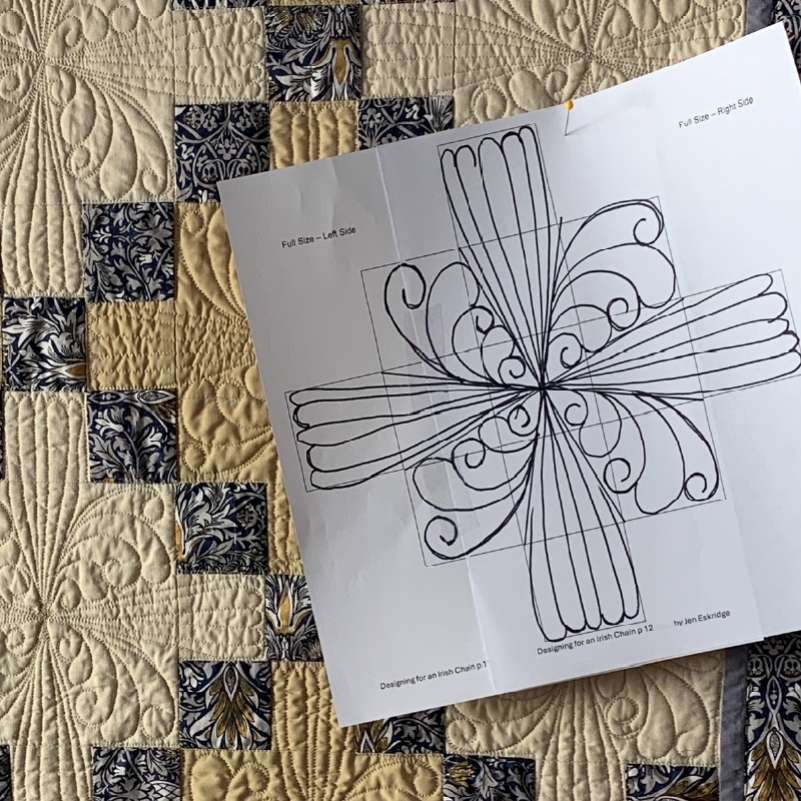Focus on creating designs for free-motion quilting motifs within the negative space of the Irish Chain pattern. Various grid options are provided for inspiration.