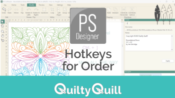 PS Designer Basics classes are hosted by Jen Eskridge. Prior to the Quilty Quill, Jen managed and launched Quiltable.com, which rolled into ProStitcher.com. You can find over 1,000 digital designs created by Jen on the Pro-Stitcher website. She's developed bag and box projects, simple edge to edge quilting designs and elaborate wholecloth projects.