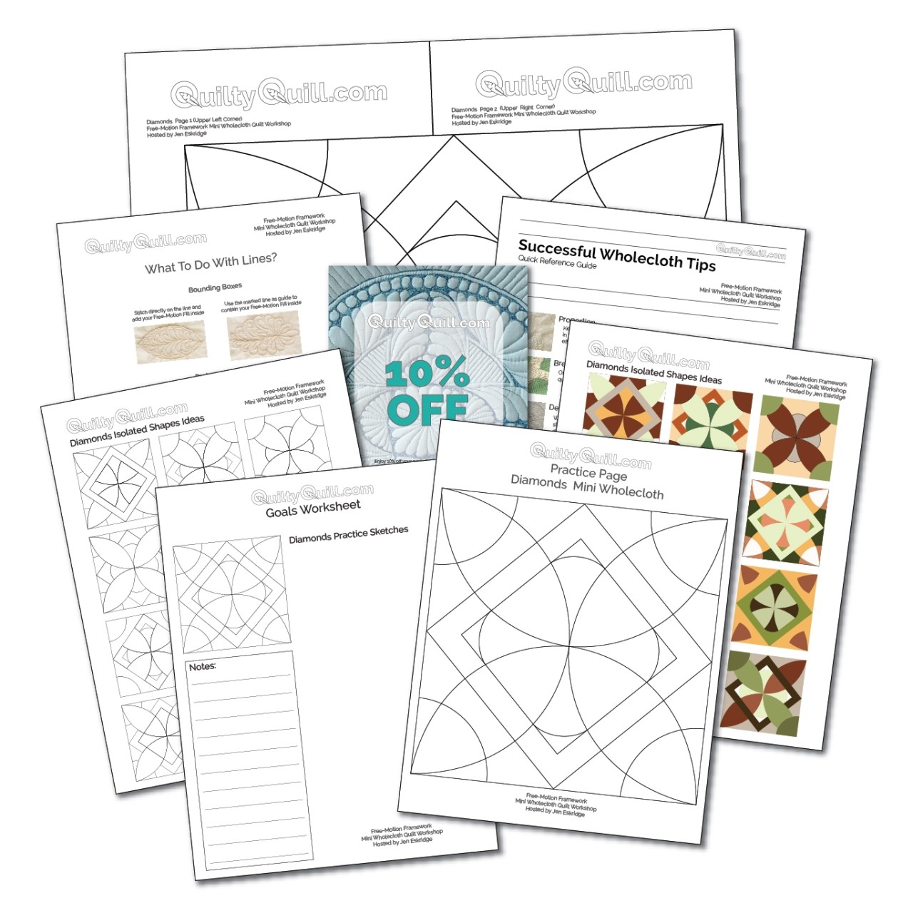 The 11-page PDF inlcuded in the download are used during the Quilty Quill's Quilter's Paradise Class: Straight Line Quilting Mini Wholecloth